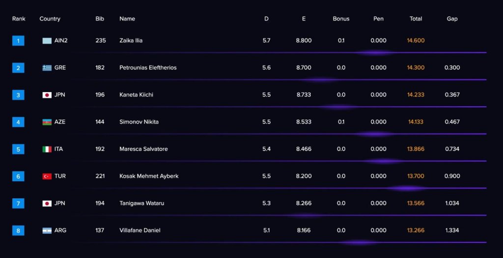 Τελικά, κατέλαβε τη 2η θέση (ΦΩΤΟ 2), ενώ το χρυσό μετάλλιο κατέκτησε ο Ρώσος Ίλια Ζάικα που συγκέντρωσε συνολικά 14.600 βαθμούς και στον τελικό 8.800. Το χάλκινο μετάλλιο κατέκτησε ο Ιάπωνας Κανέτα Κίτσι.