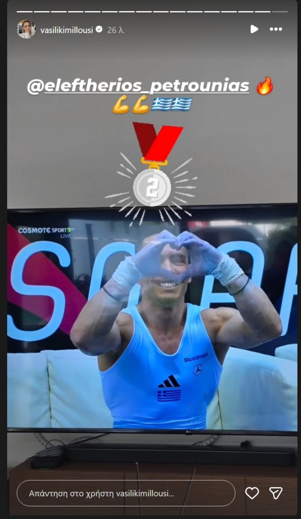 Μετά την επιτυχία του Πετρούνια, η σύζυγός του και επίσης αθλήτρια Βασιλική Μιλούση ανέβασε ένα post στο Instagram δίνοντας συγχαρητήρια στον άνδρα της για τη νέα του μεγάλη επιτυχία (ΦΩΤΟ 3).
